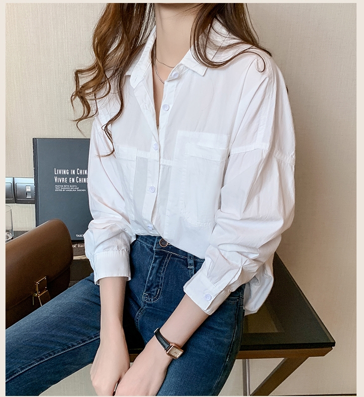 F757831 루즈핏 주머니 화이트 셔츠 블라우스 남방