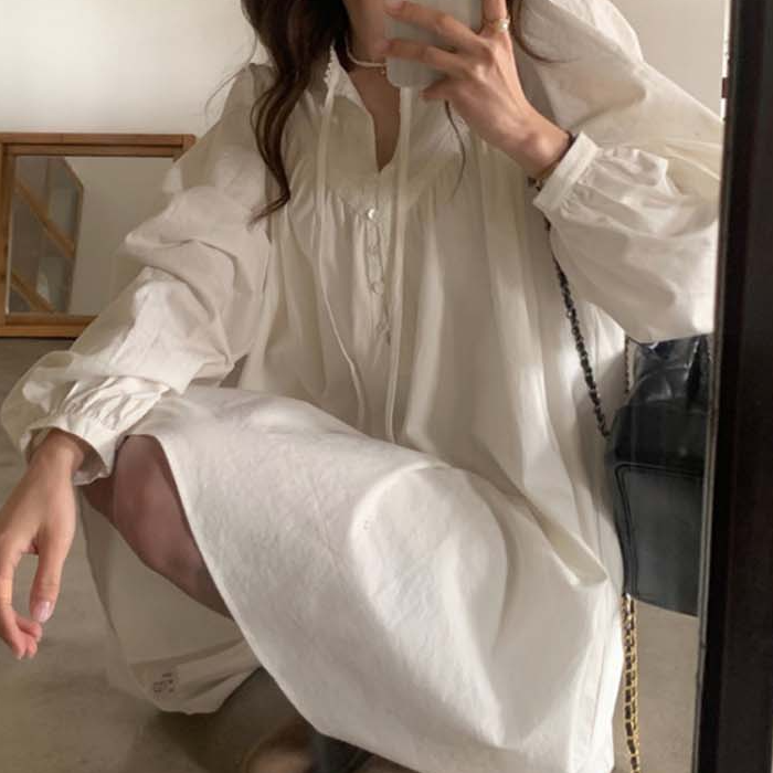 넥스트링 리본 치마 로맨틱한 휴양지룩 퍼프소매 원피스
