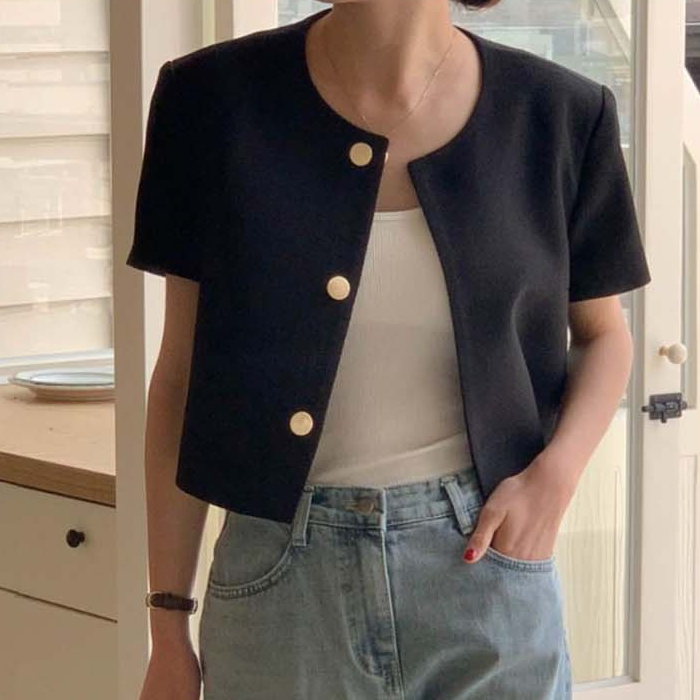 세미크롭 아우터 날씬해보이는 베이직 반팔 재킷
