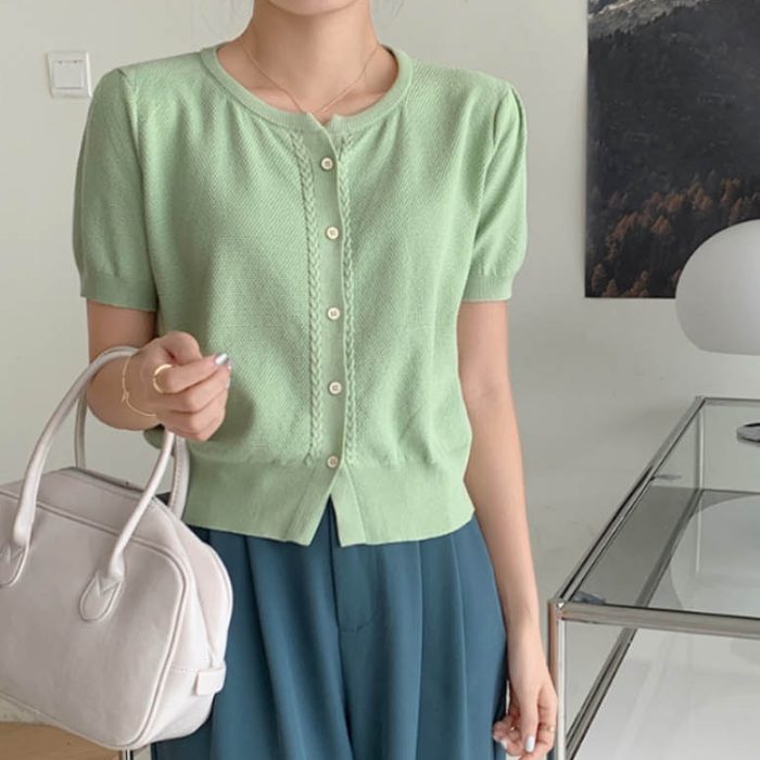 부드러운 니트소재 반팔 아우터 라운드넥 썸머 가디건