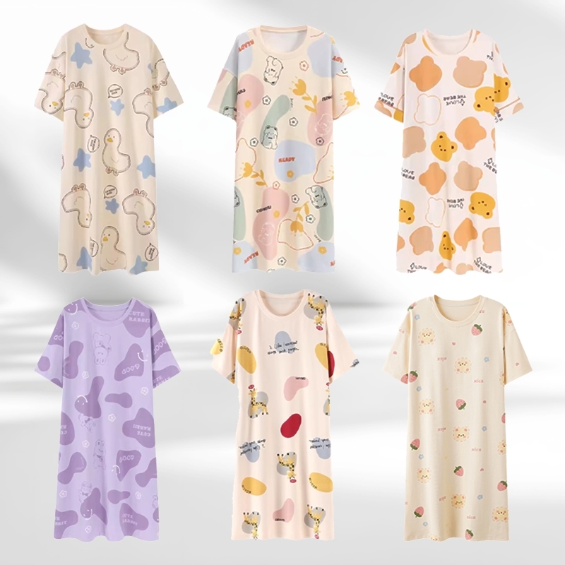 여름 파스텔 반팔 여성 박시 잠옷 캐릭터 프린팅복장