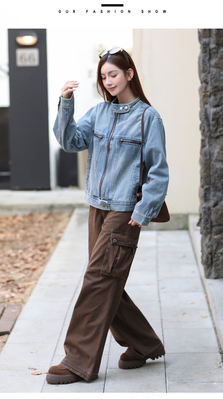 F204431 노카라 지퍼 장식 루즈핏 청 데님 재킷 데일리 아우터 집업