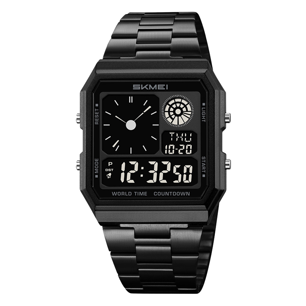디지털 전자 월드 타임 정장 남성 메탈 손목 시계
