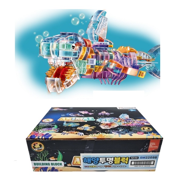 해양 투명 블럭-12개 세트 블럭장난감 킹샤크 합체블록