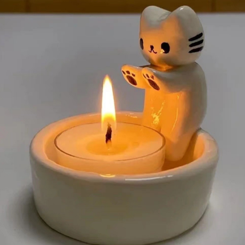 불쬐는 냥이 촛불 홀더 캔들 홀더 티라이트 트레이 여자친구 선물