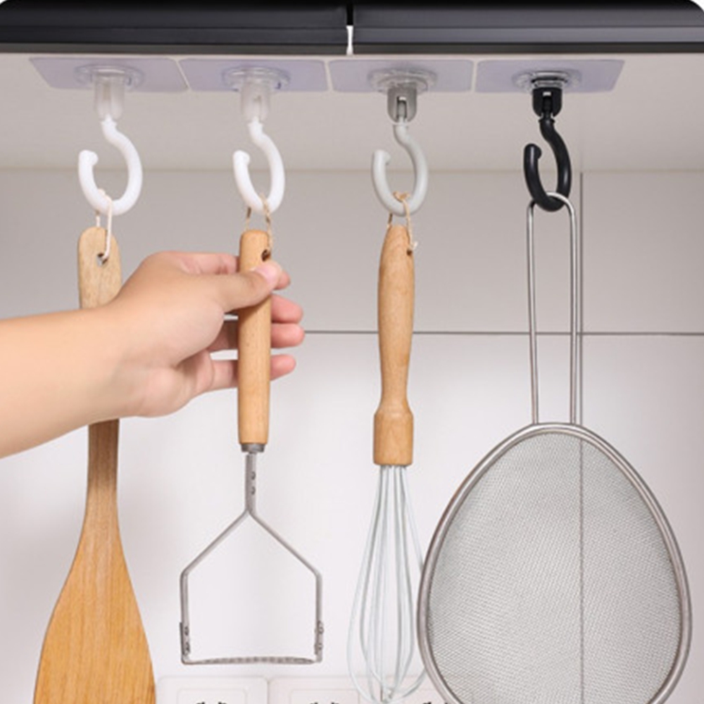 천장 후크 고리 (화이트) 회전 벽 무타공 걸이 접착식 주방 욕실 옷장