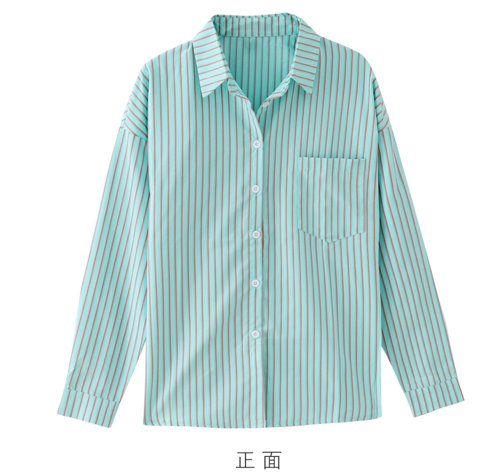 F713041 화사한 민트 줄문의 카라 블라우스 셔츠 남방 봄 가을 출근 데일리
