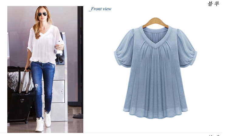 LS74200 시폰 쉬폰 주름 V넥 루즈핏 반팔 블라우스 여름 썸머 출근 데일리
