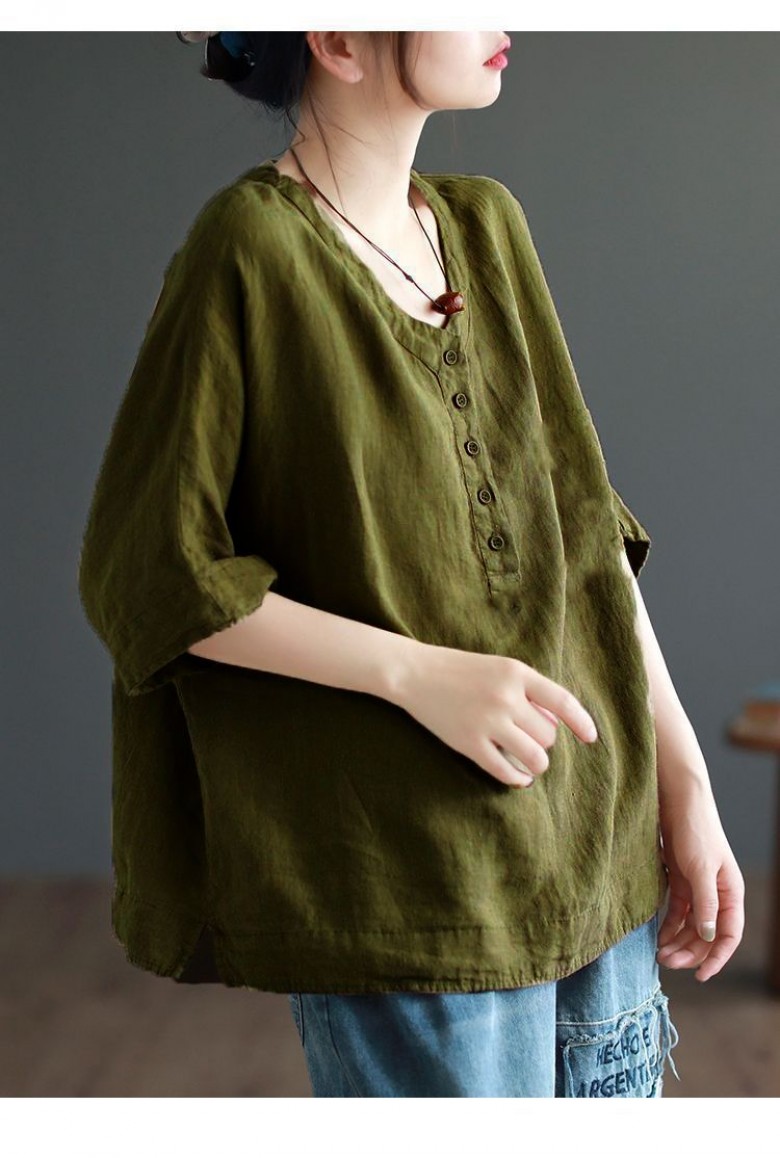 S498321 루즈핏 면 마 반팔 블라우스 여름 썸머 출근 데일리 엄마 마담 빅사이즈