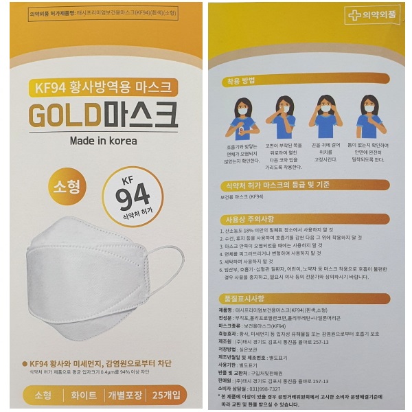 품명 태시프리미엄 보건용마스크 KF94(소형)