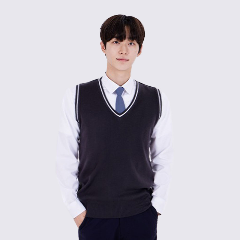 교복몰 보풀방지 그레이화이트 롱 조끼(남자) 교복