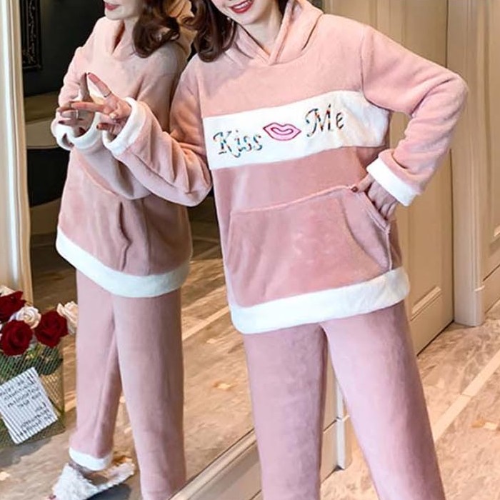 부드럽고 따듯한 겨울 수면잠옷 후드 여성 홈웨어