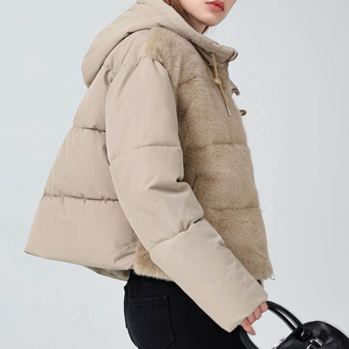 캐주얼한 숏기장 후드 패딩 포근한 하프퍼 윈터 잠바