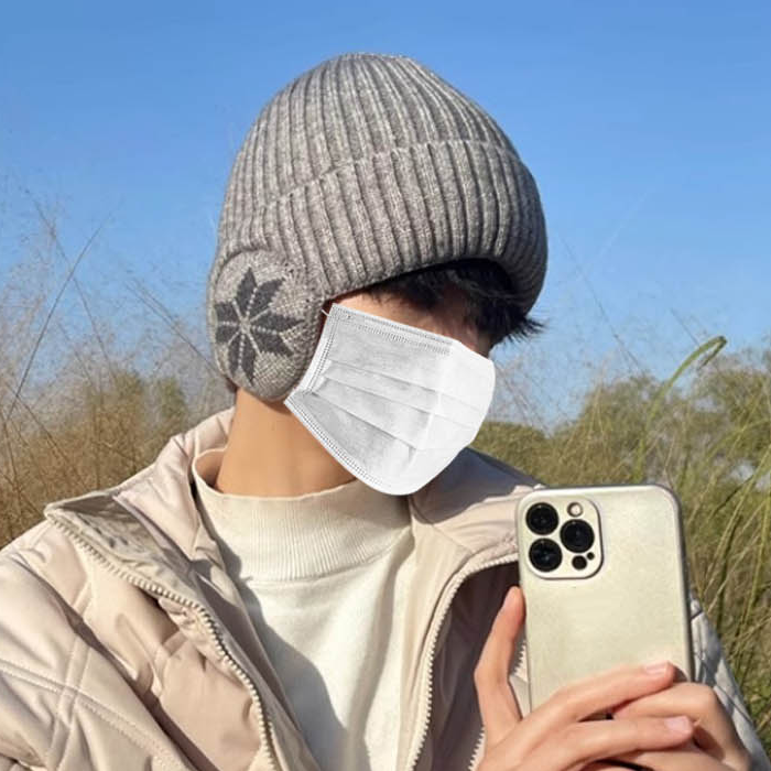도톰한 방한 모자 짜임 비니 눈꽃 패턴 동글 귀마개