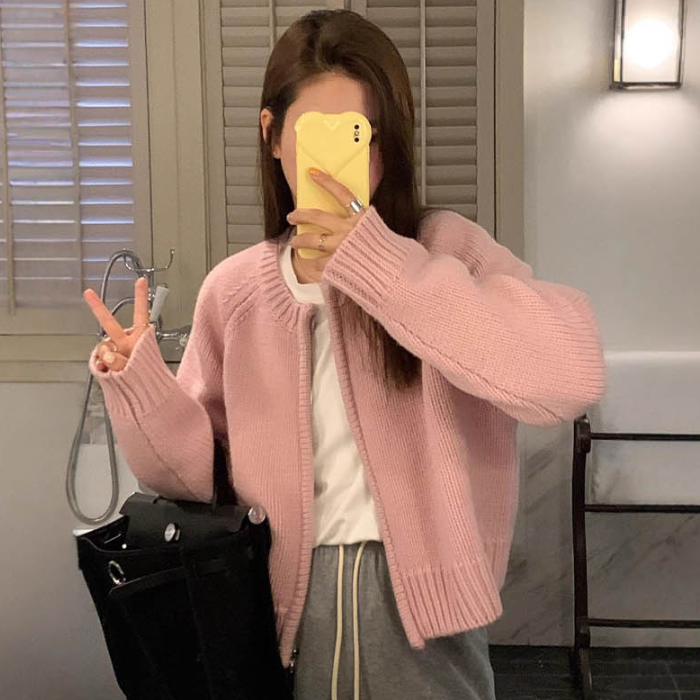 라운드넥 투웨이 지퍼 카디건 크롭 니트 아우터