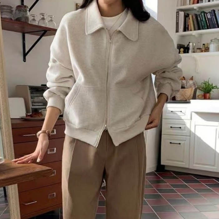 단정하고 캐주얼한 카라 집업재킷 단정한 여성자켓