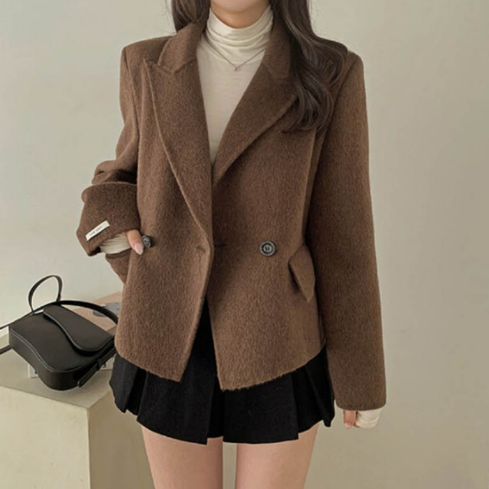 군더더기 없는 미디 더블버튼 자켓 깔끔한 카라 코트