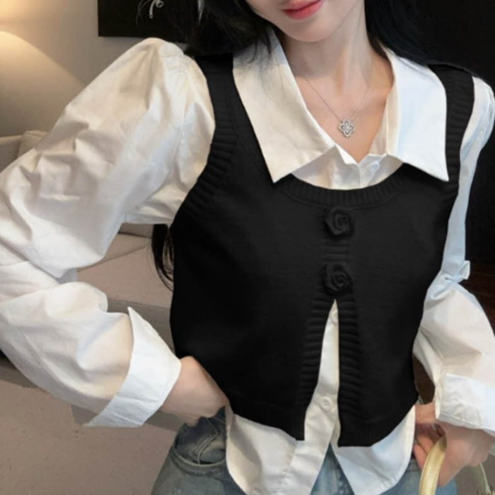 레이어드 블라우스 뷔스티에 셔츠 여유핏 크롭기장
