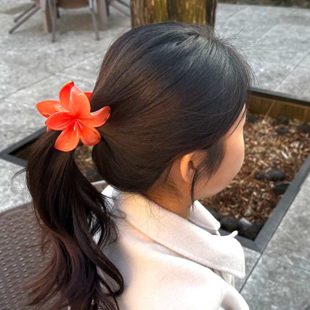 플루메리아 하와이꽃 집게핀 썬셋오렌지