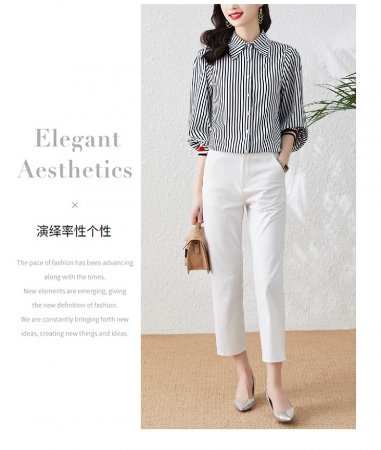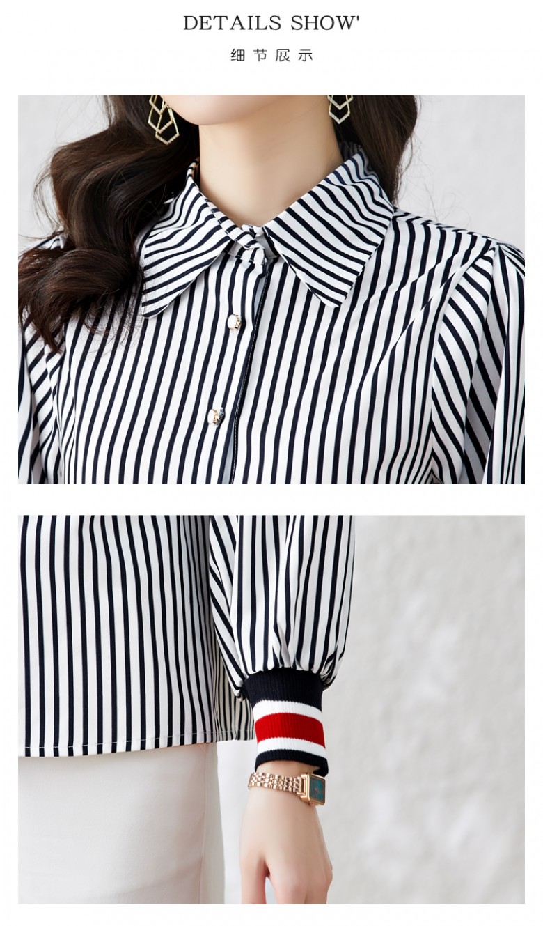 F90991 줄무늬 손목 시보리 출근 셔츠 블라우스 남방