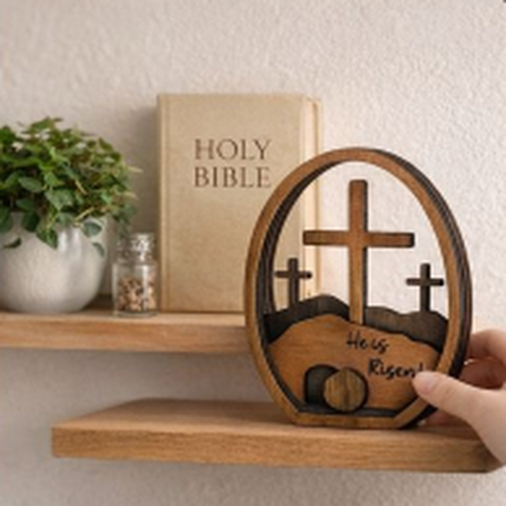 부활절 우드 십자가 장식 He Is Risen 원목 인테리어 오브제