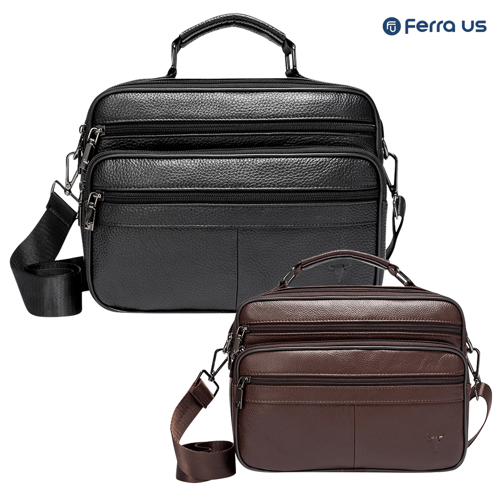 - 페라어스 남성 심플 지퍼 소가죽 크로스백 MCBBT0031