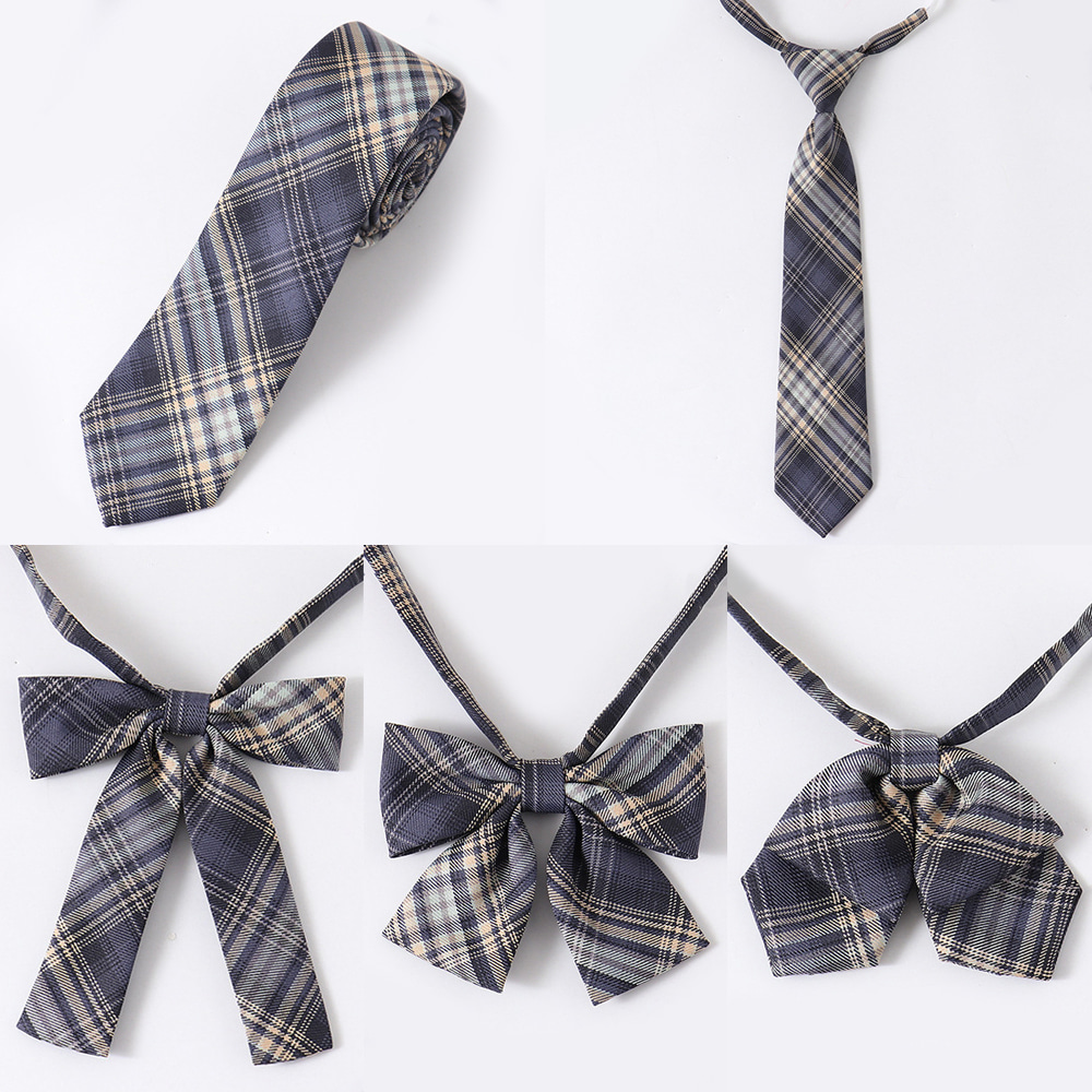 - (대여)라이트네이비 사선체크 여자 넥타이 5종 교복.