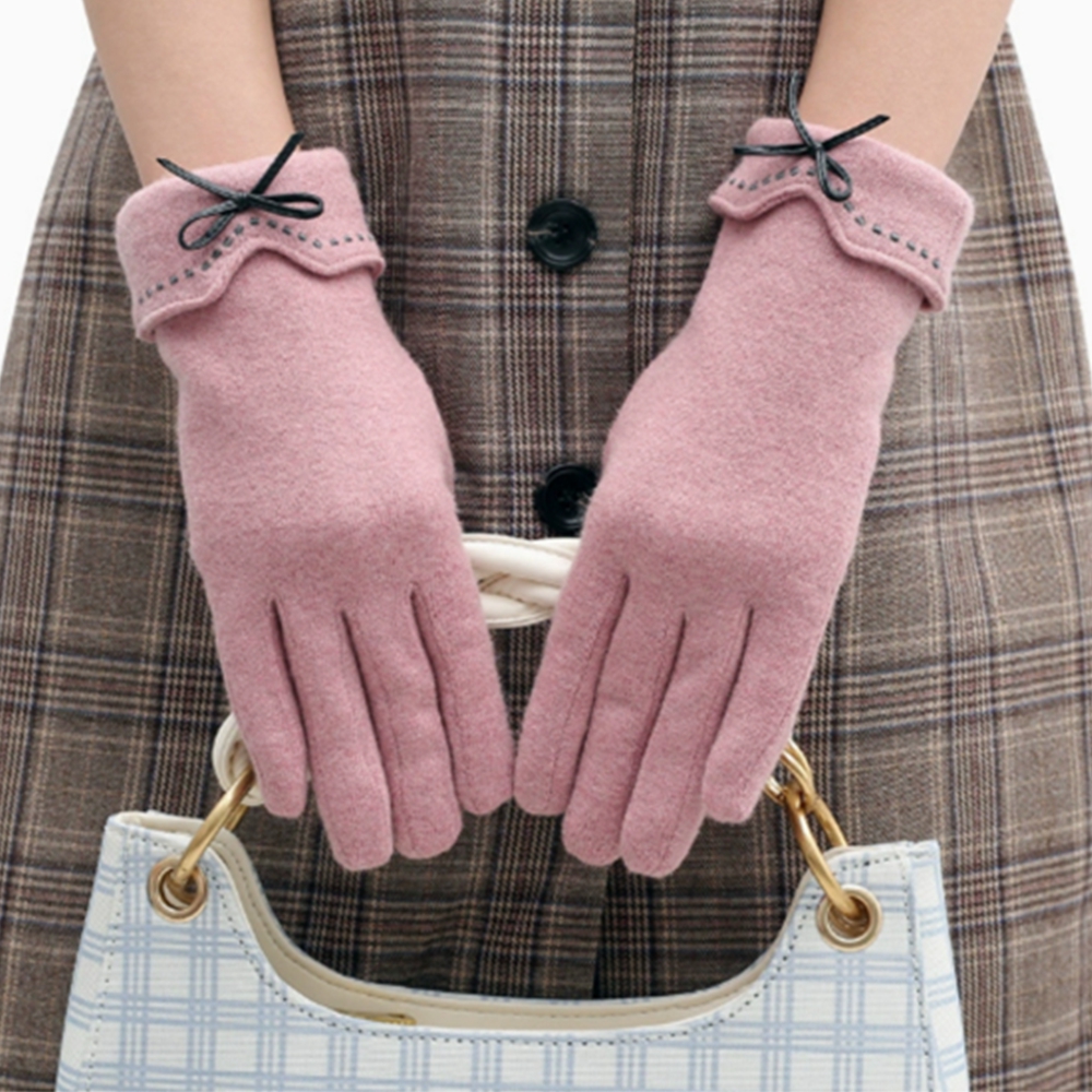 - 여성 겨울 리본 장갑 (4color) 털 방한 여자 기본 손가락 정장 출근 터치