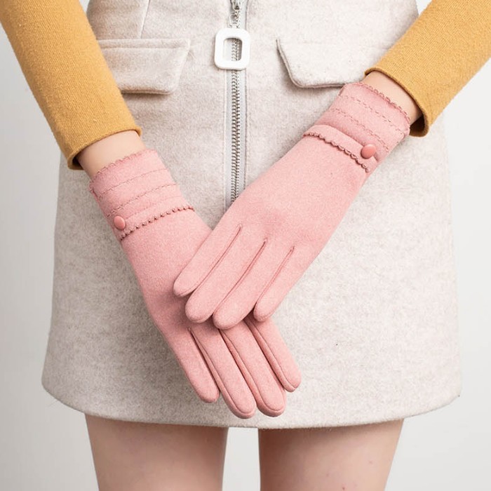 - 겨울 장갑 세련된 원버튼 여성 블러브 스웨이드 소재