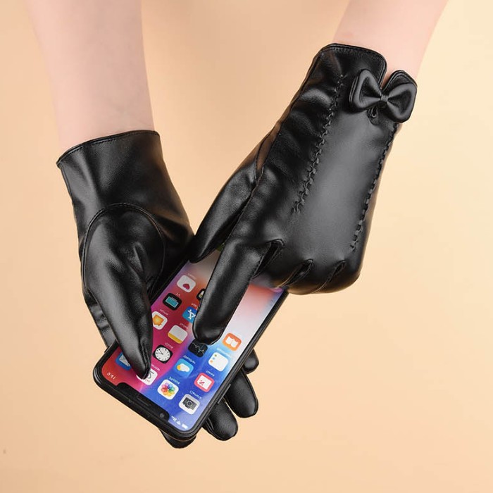 - 우아한 리본 장식 가죽 장갑 겨울 스마트폰 터치 글러브