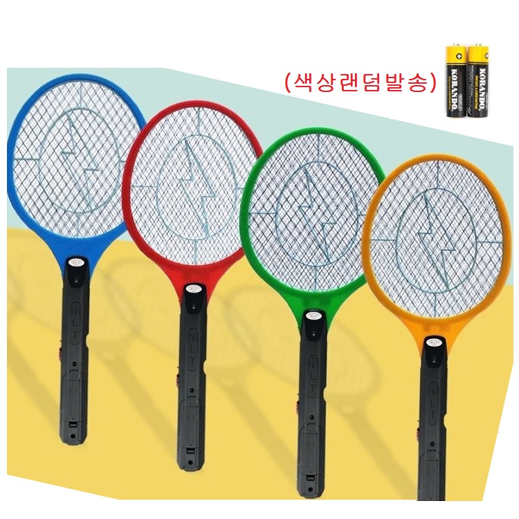 - 노랑3중안전망 전기모기채 건전지포함 파리채 모기채