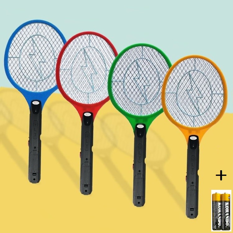 - 빨강3중안전망 전기모기채 건전지포함 파리채 모기채