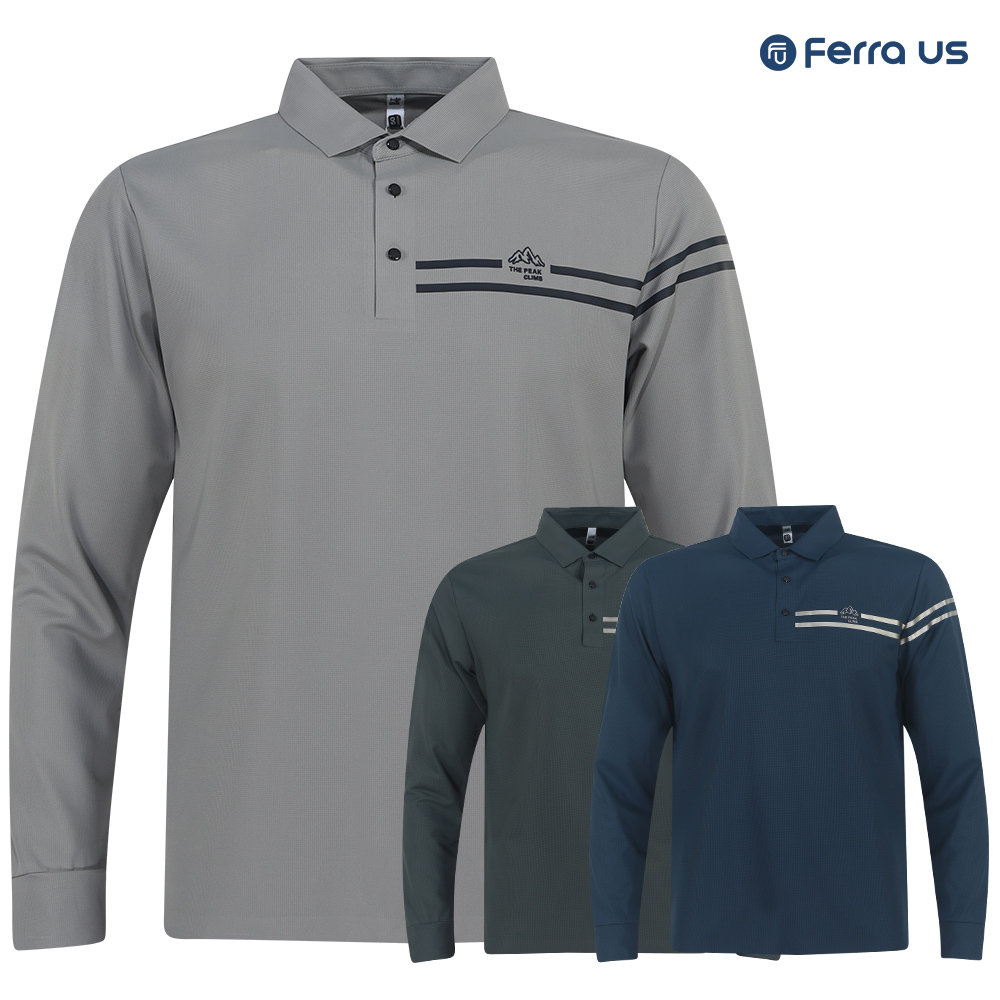 - 페라어스 남성 가을 스트라이프 디테일 카라 골프셔츠 GCTF5OM2614