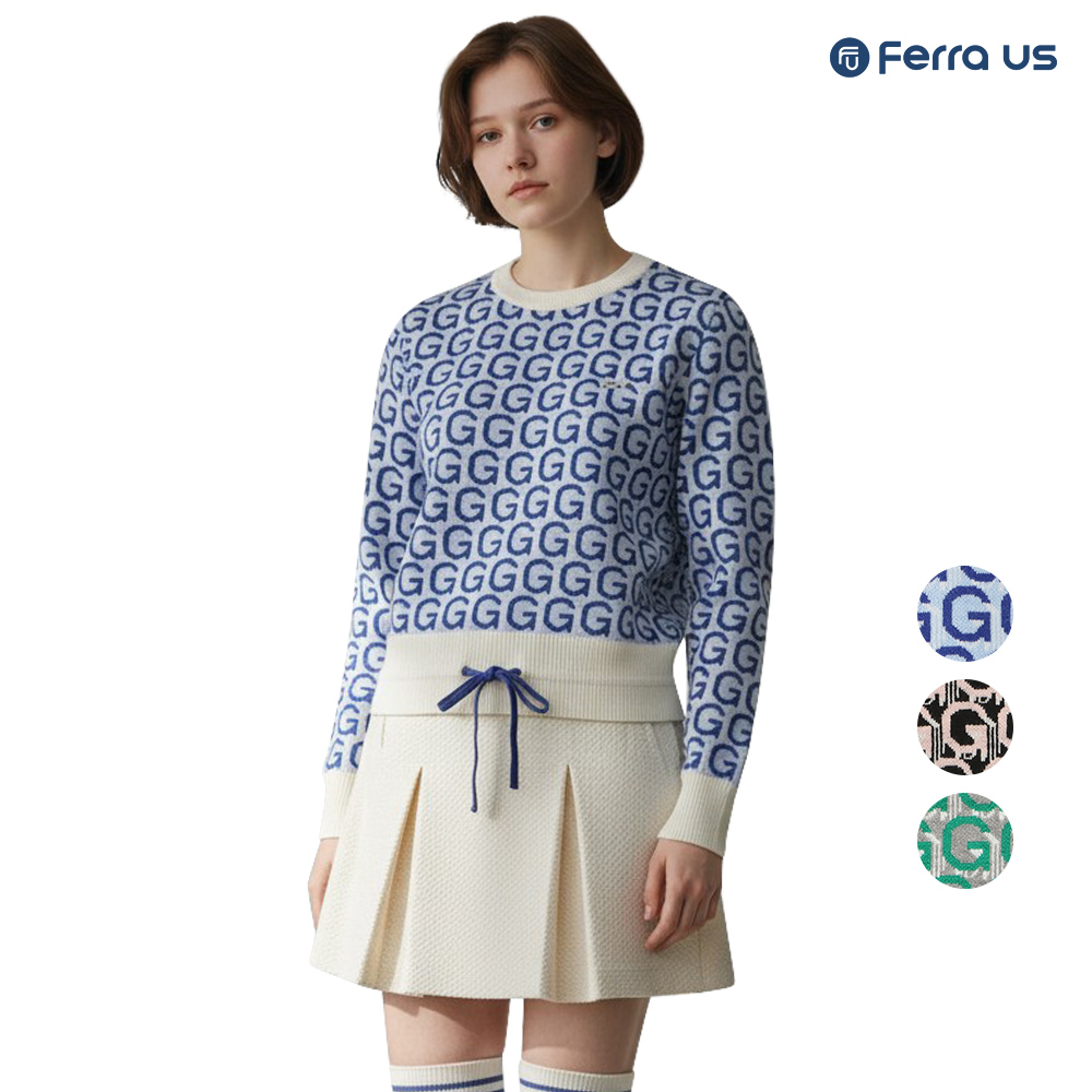 - 페라어스 여성겨울 모혼방 방풍 안감 라운드 패턴 골프 니트 ATW54R5576
