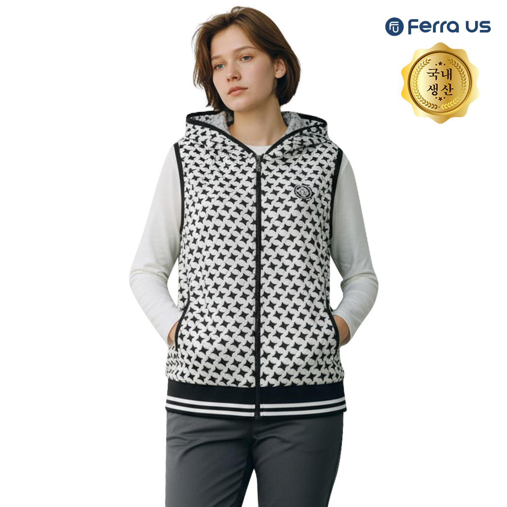 - 페라어스 여성 봄가을 폴리스판 별무늬 후드 집업 골프 조끼 AVF5MI6475