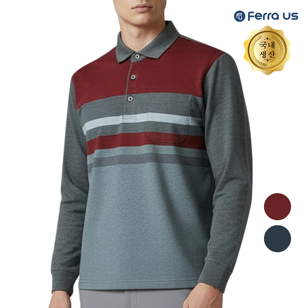 - 페라어스 남성 겨울 국산 면혼방 카라 긴팔 골프셔츠 GCTW5TH2673
