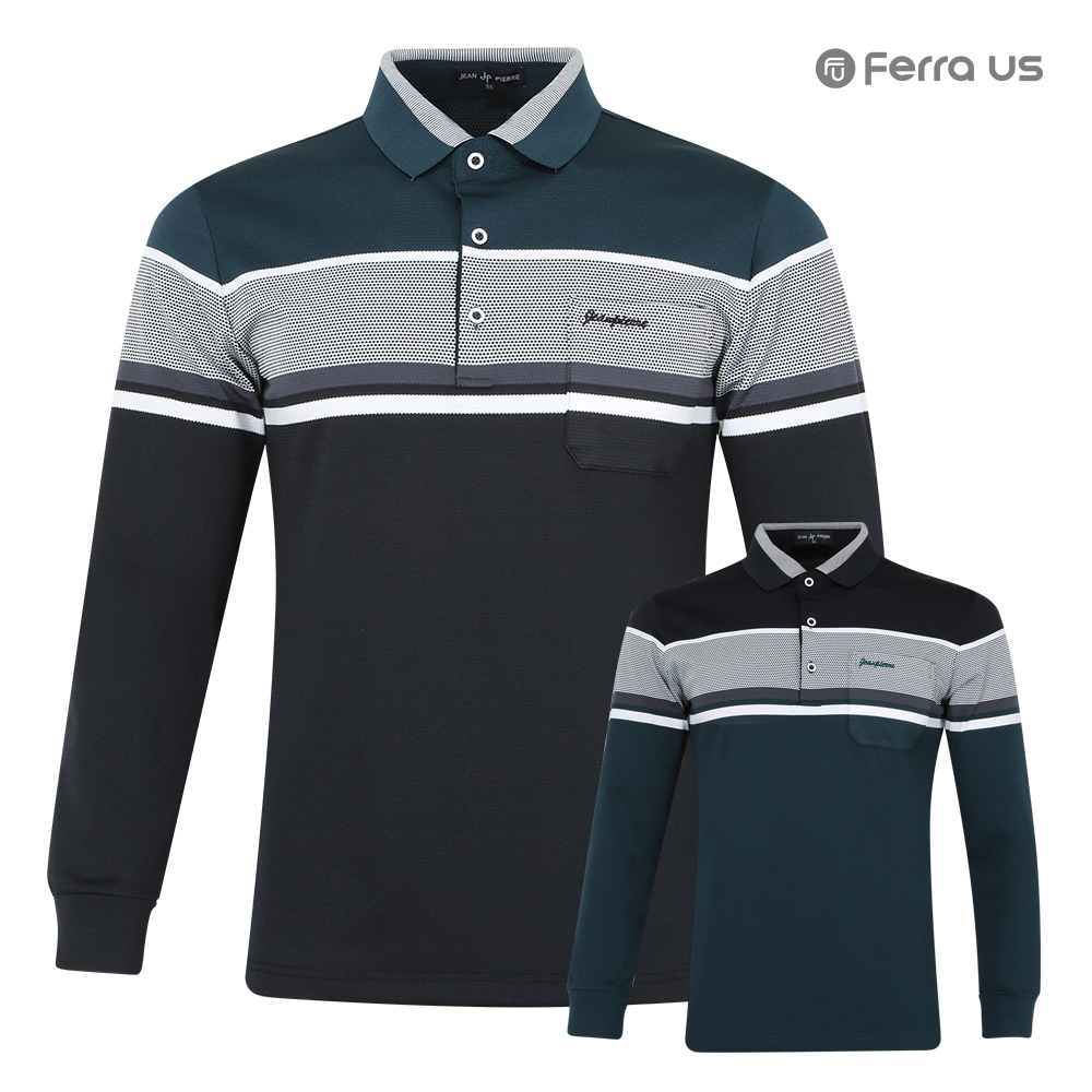 - 페라어스 남성 이중카라 체인 골프 긴팔셔츠 CTS3AJ2045