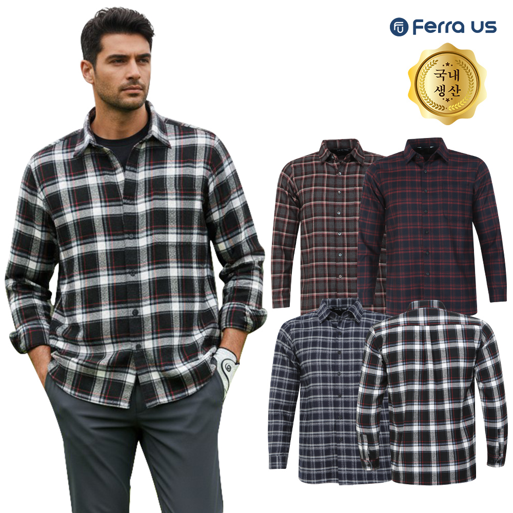 - 페라어스 남성 국산 울혼방 보온 체크 남방 셔츠GCTW5AJ2642