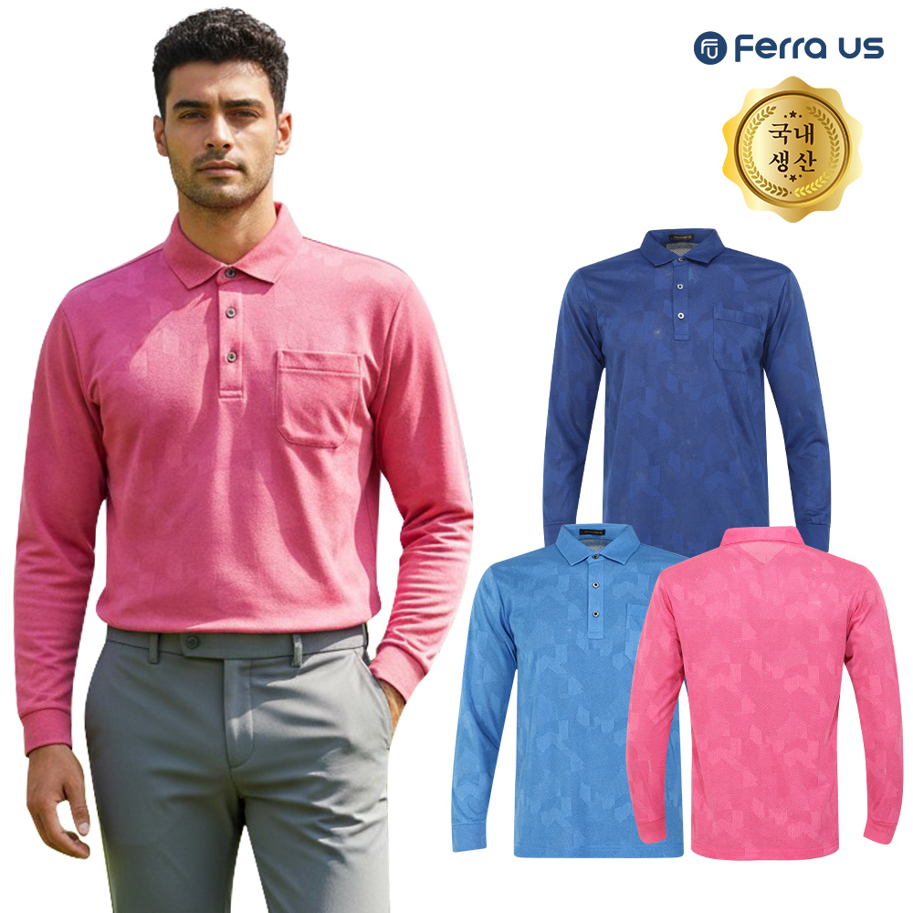 - 페라어스 남성 국산 면혼방 보카시 패턴 카라 긴팔 골프셔츠 GCTF5TH2641