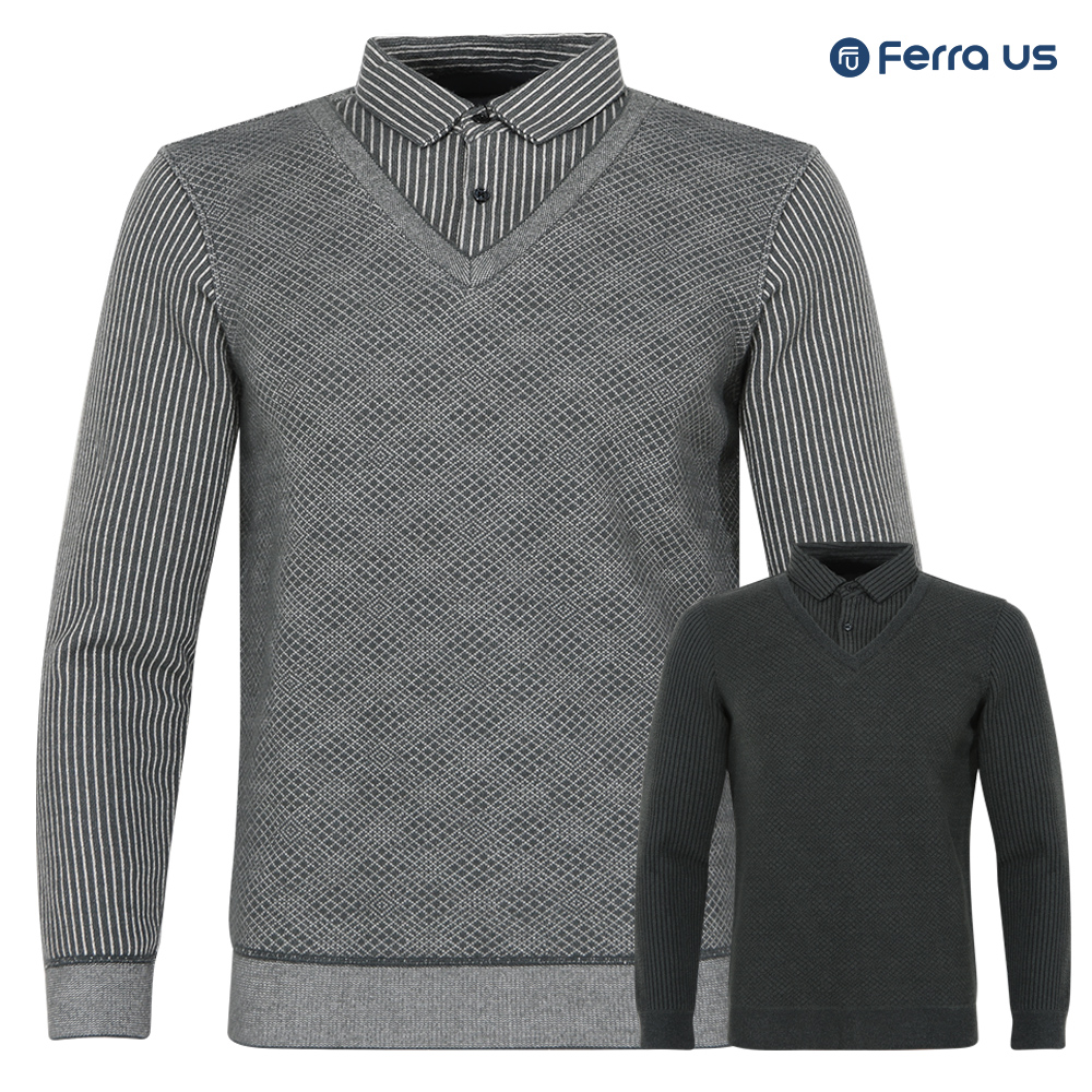 - 페라어스 남성 레이어드 니트 카라 골프셔츠 GCTW4LU2490