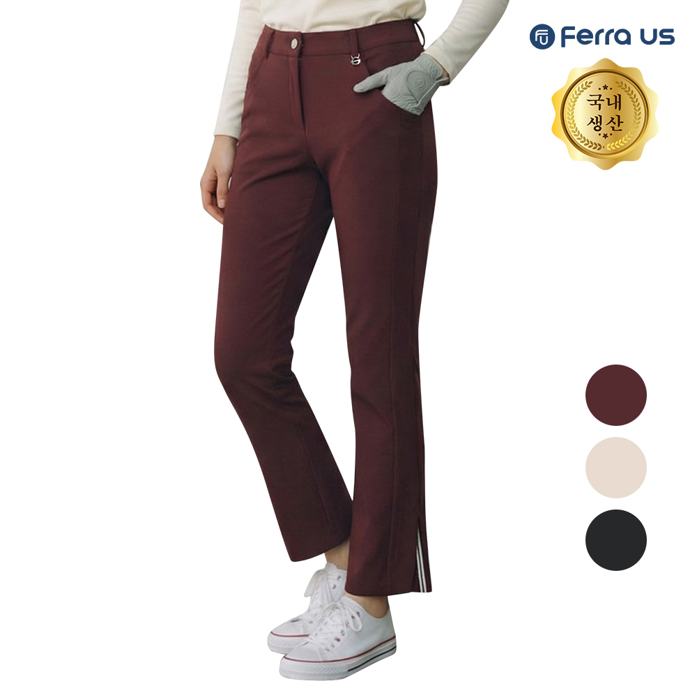 - 페라어스 여성 국산 겨울 기모 스판 밴드 부츠컷 레터링 골프바지 APW5MI8631