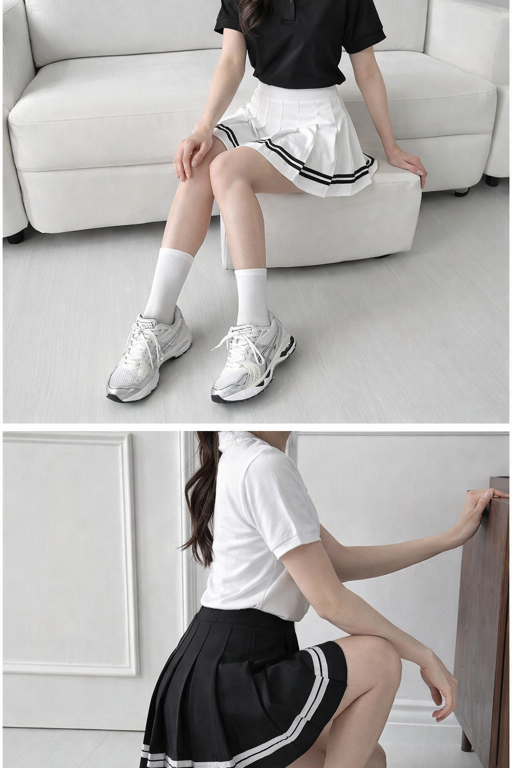 - 이플 테니스 스커트 체크 미니 치마 골프 속바지 화이트, 블랙