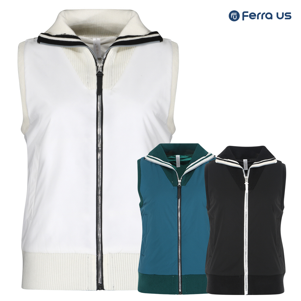 - 페라어스 여성 우븐배색 지퍼오픈 니트조끼 AVF44R6046