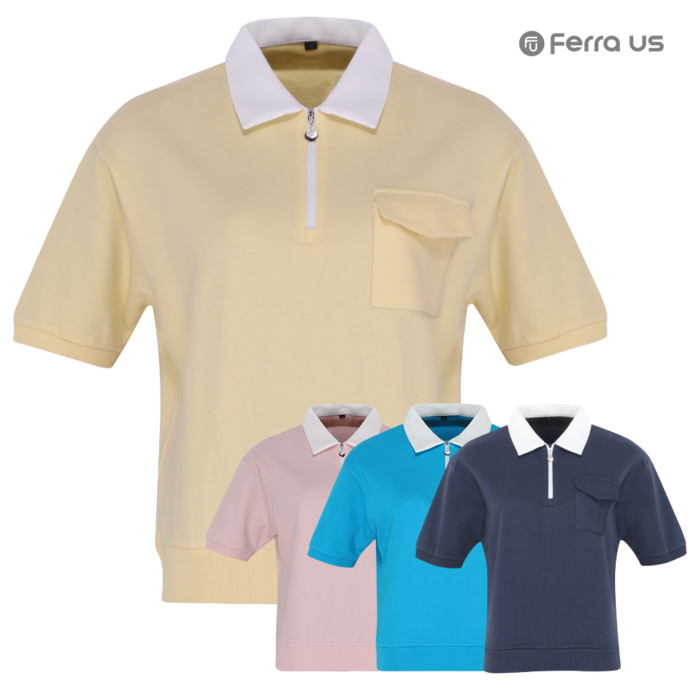 - 페라어스 여성 포켓레터링 반집업 카라 반팔 골프셔츠 ATM4JN5042