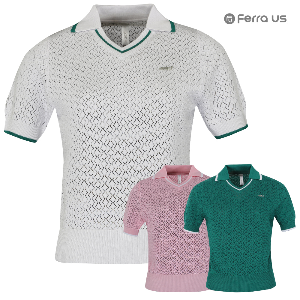 - 페라어스 여성 마름모펀칭 카라 니트 골프셔츠 ATM44R5097