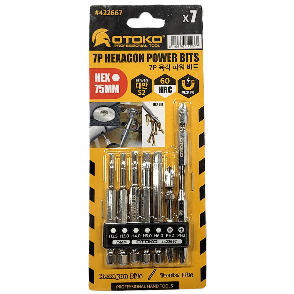 - 임팩드릴에 원터치 장착사용 육각 파워 비트 75mm 7P