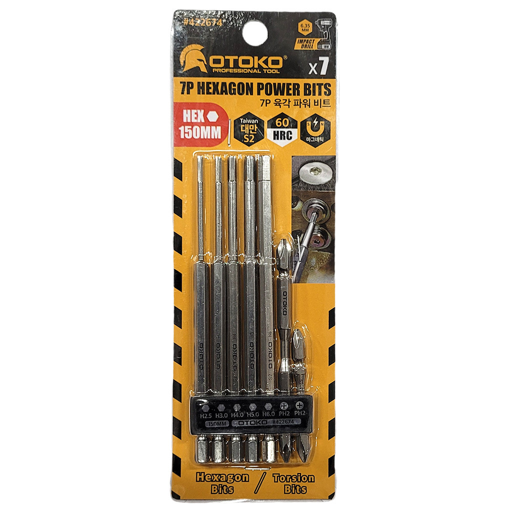- 임팩드릴에 원터치 장착사용 육각 파워 비트 150mm 7P