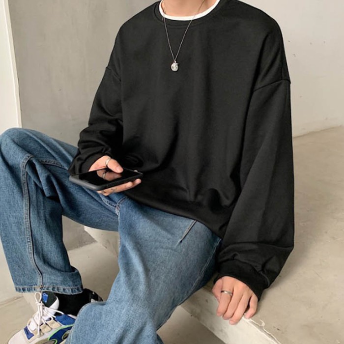 - 군더더기없는 무지 맨투맨 라운드넥 기모 티셔츠