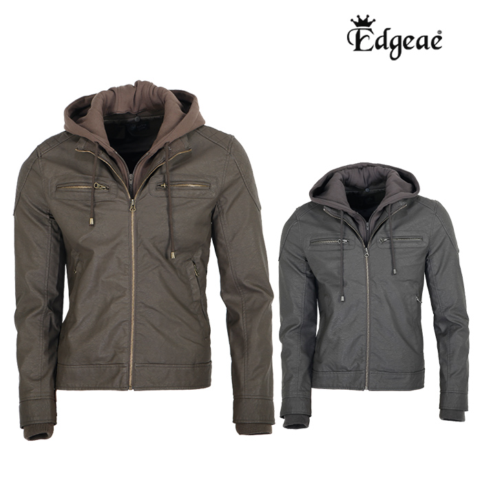 - 엣지애 남성 후드 탈착 포켓 가죽자켓 MCOWS7100R8