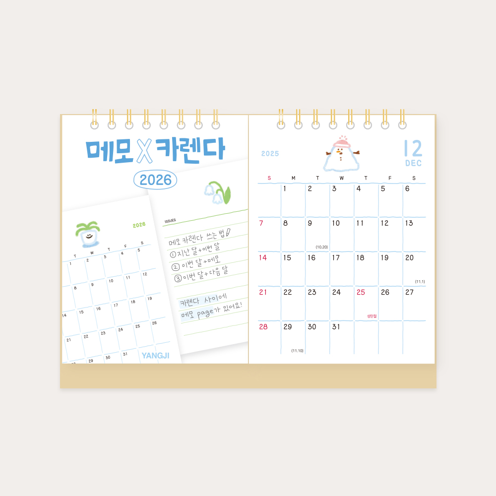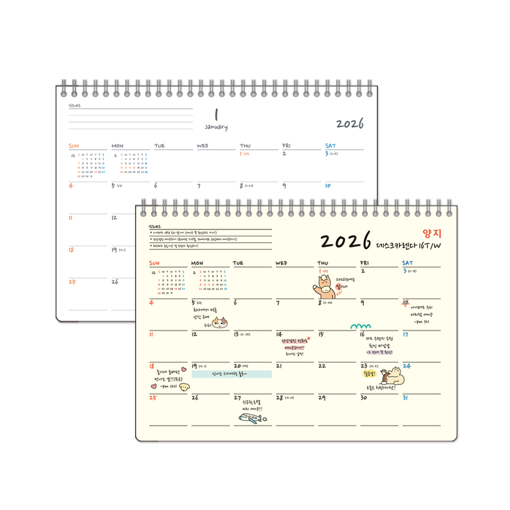- 26년 양지사 달력 메모와 카렌다 1면1개월